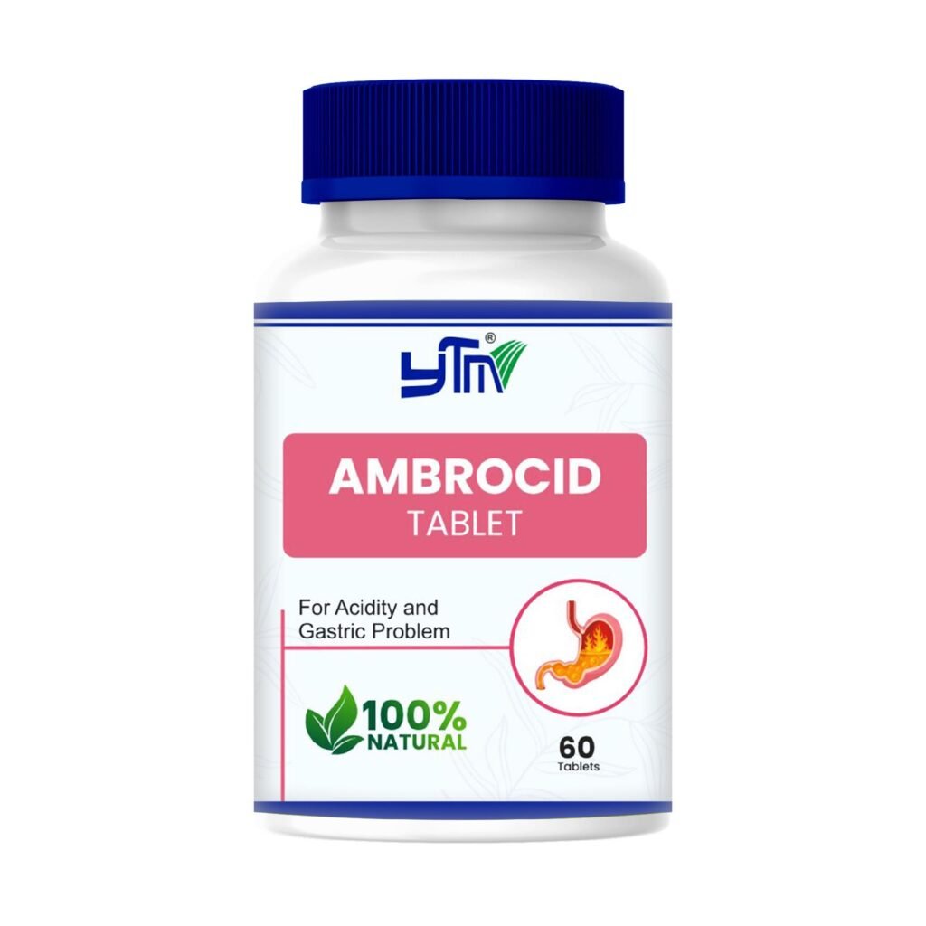 To relieve acidity, heartburn, gas, and digestive discomfort naturally, herbal support offers a safe and effective solution. Ambrocid Tablet by YTM India Pvt. Ltd. is formulated with powerful Ayurvedic ingredients like Yastimadhu, Shatavari, Amla, Brahmi, Kapurkachalli, Shankh Bhasma, and Kodi Bhasma.